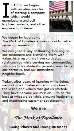 Mark of Excellence. As our product line and expertise grows, so